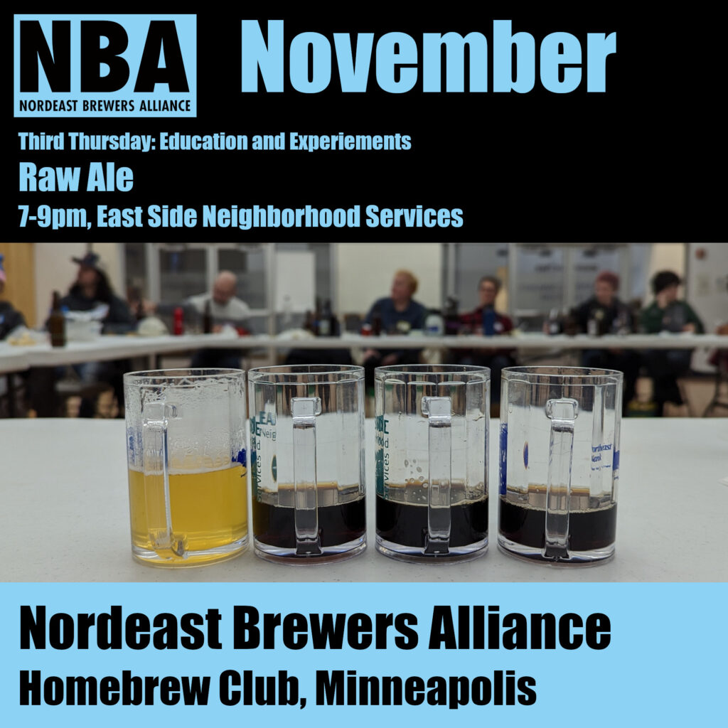 When a beer is not boiled, how does that change the sensory experience? Raw ale does just that. Next week at the monthly meeting we will explore this style and see what it involves, how it is different, and what to consider when you make your recipe.
