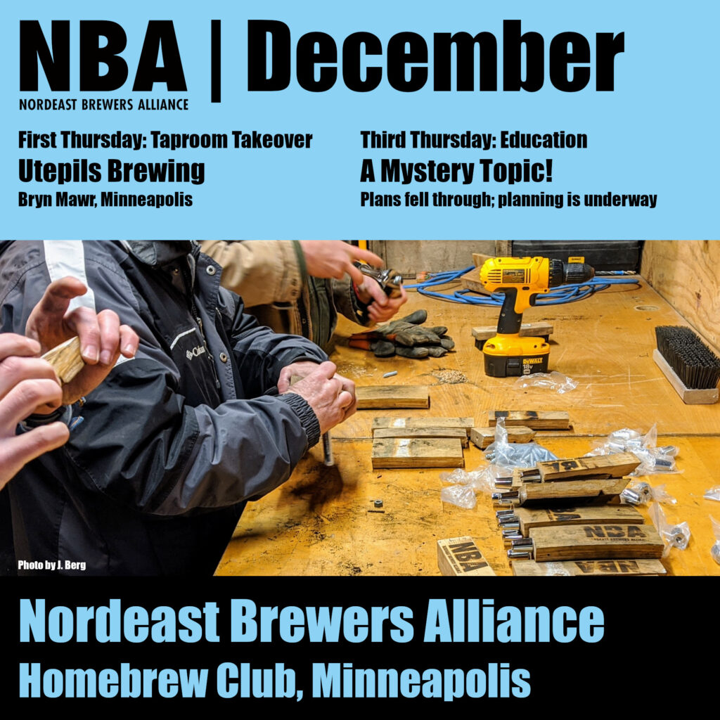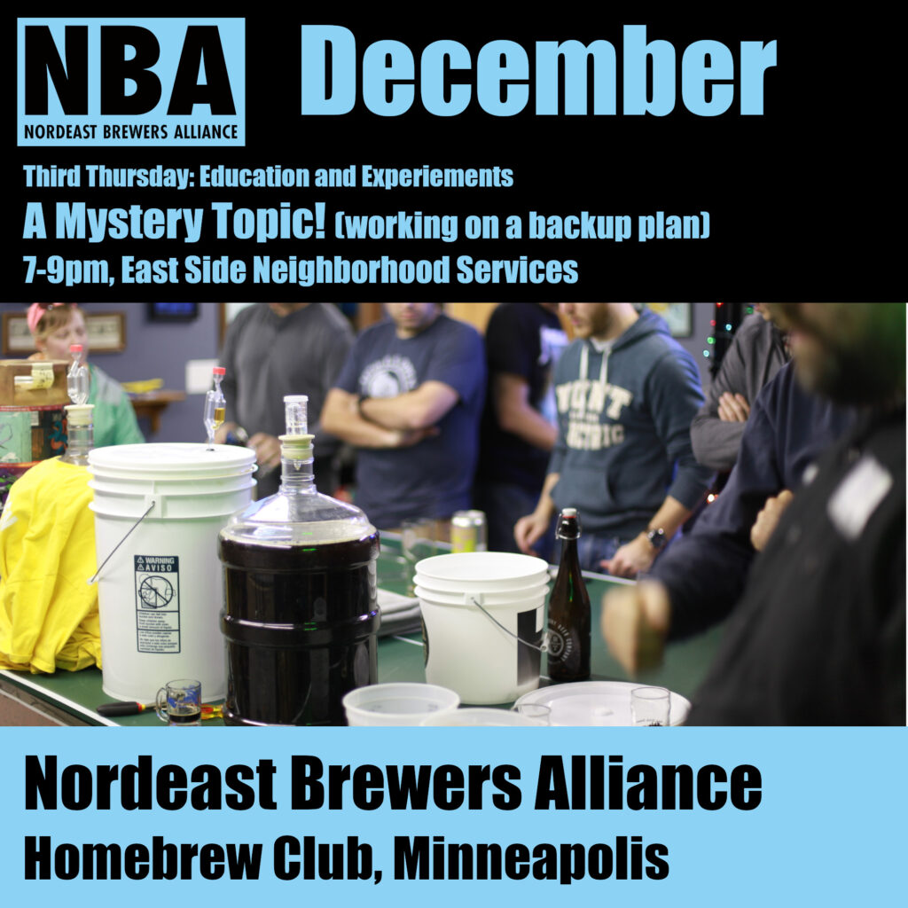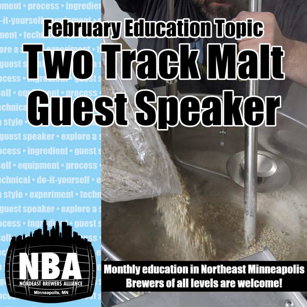 Bill from Two Track Malting is joining the meeting next week to talk about the products coming out of that North Dakota maltster. We also have four beers brewed without knowing the ingredients. Can you identify what makes the four beers different? Monthly meetings (and all events!) are open to anyone.