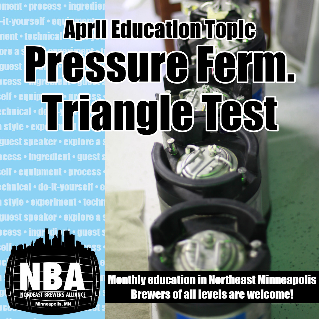 The education topic in a couple weeks is the long-awaited return of a triangle test experiment to identify pressure vs. non-pressure fermented versions of the same beer. Everyone will be served three glasses where one is different. Can you tell the difference — and will it be the process you expect?