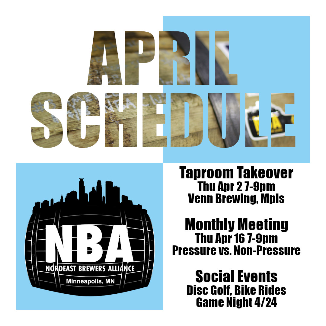 Bill from Two Track Malting is joining the meeting next week to talk about the products coming out of that North Dakota maltster. We also have four beers brewed without knowing the ingredients. Can you identify what makes the four beers different? Monthly meetings (and all events!) are open to anyone.